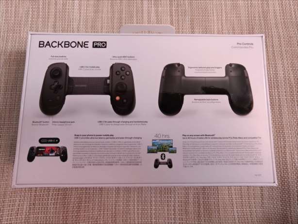 Backbone Pro本体でです。しっかりした造りになっていて手に持ったホールド感も心地いいです。指紋は付きにくい感じです。ザラザラした感じで滑りにくいのもグッドです。