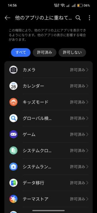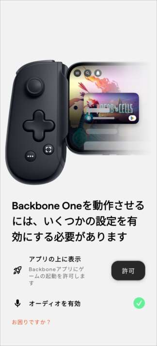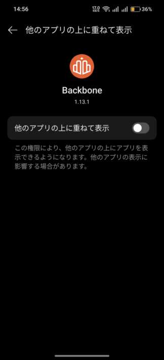 画面を開くと「他のアプリの上に重ねて表示」とあるのでこちらをオンにするとBackboneのアプリが開けるようになりました。