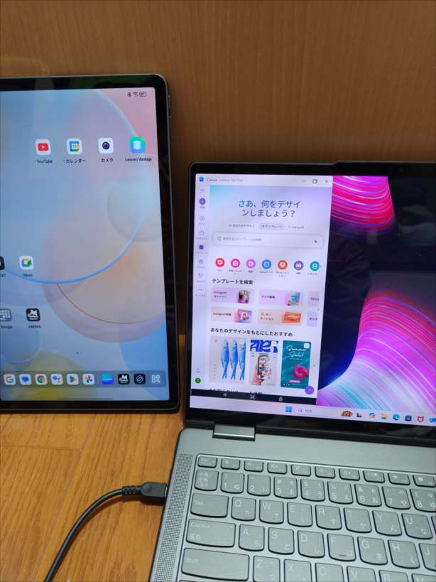 「Lenovo Tab Plus」側のCanvaの画面をパソコンに表示させました。