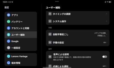 設定の中にあるユーザー補助の自動文字起こしから設定も可能です。