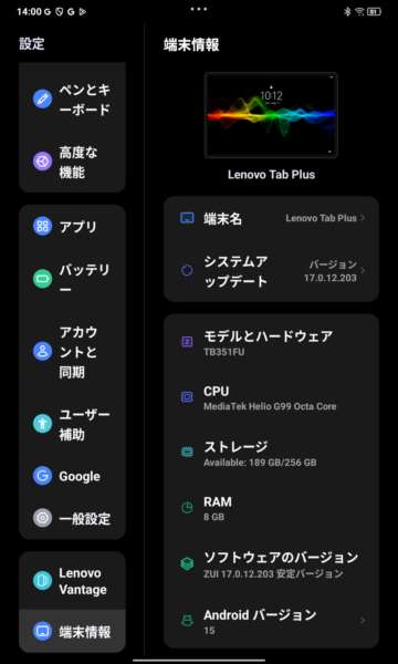 Lenovo Tab Plusのスペック