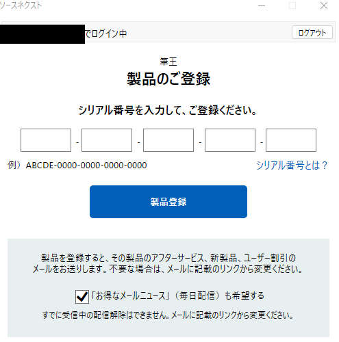 ソースネクストで購入した場合はユーザー登録が必要です。