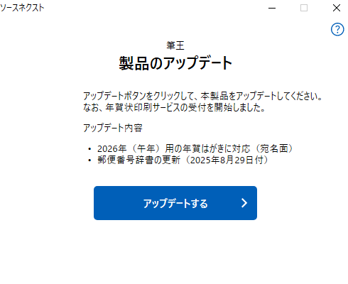 | 筆まめVer.36 | 筆ぐるめ 33 2026年版 | 筆王Ver.30 | 宛名職人Ver.32 | ||