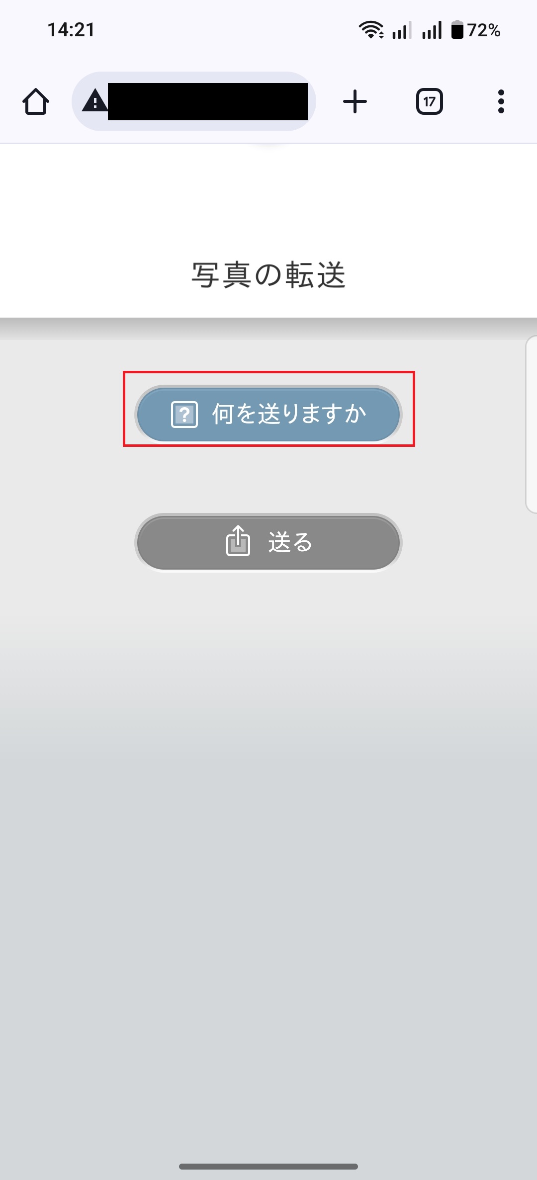 スマホでQRコードを読み込むと上記の画面が出てきます。「何を送りますか」を選ぶとカメラを起動したり写真のアプリが開くようになって送りたい写真を選びます。