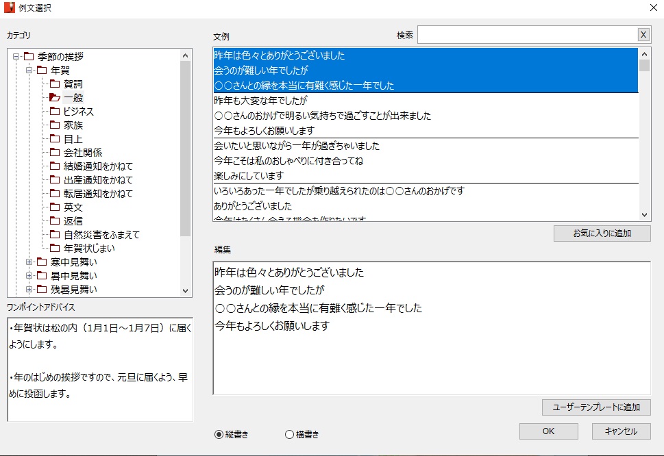 文章もたくさん揃っています。アドバイスもあるので自分に合った文章を選べます。また編集場所では自分用に修正が出来ます。