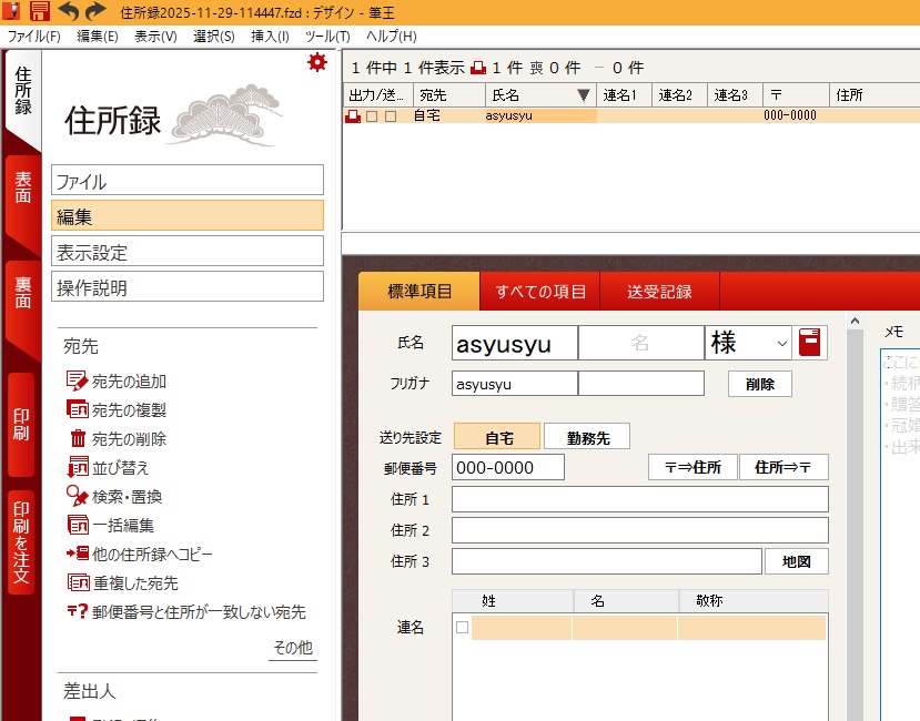 住所録に関しては送る人送られる人の住所の登録が出来ます。