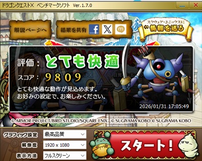 最高品質・1920×1080・フルスクリーンで評価:とても快適でした。スコアは9809でした。