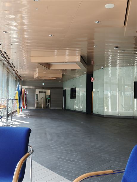 入る時に荷物検査がありました。ロビーは広いです。ホールで欧州連合代表部の役割についてプレゼンしてくれました。